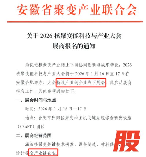 2026核聚变能科技与产业大会将于2026年1月16日至17日在安徽合肥举办。此次大会将在合肥庐阳区聚变堆主机关键系统综合研究设施(CRAFT)园区召开,主题为“聚核之力,创见未来”,旨在促进核聚变产业链上下游协同创新与成果转化,届时核聚变产业资金、产业技术合作有望加速。